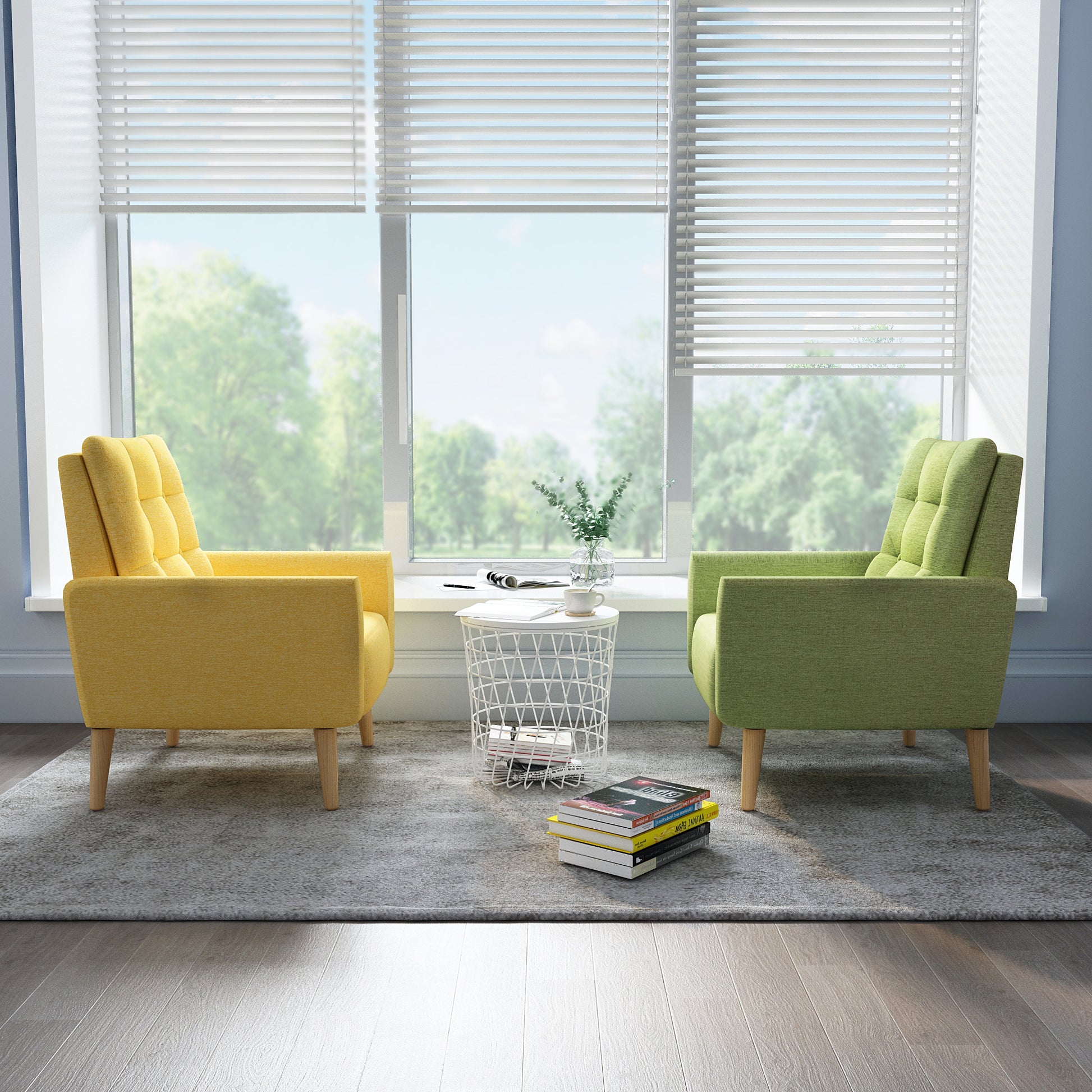 Style Armchair, Grass Green/Lemon Yellow Color, Solid Wood Legs