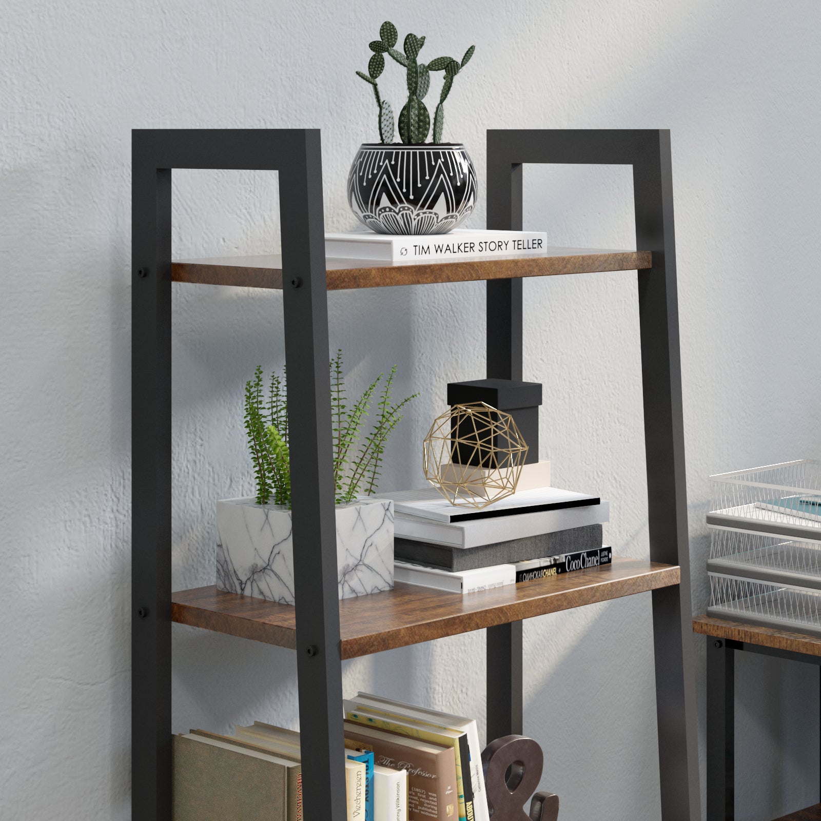 Multi-functional Ladder Shelf, Antique Wood Grain Color