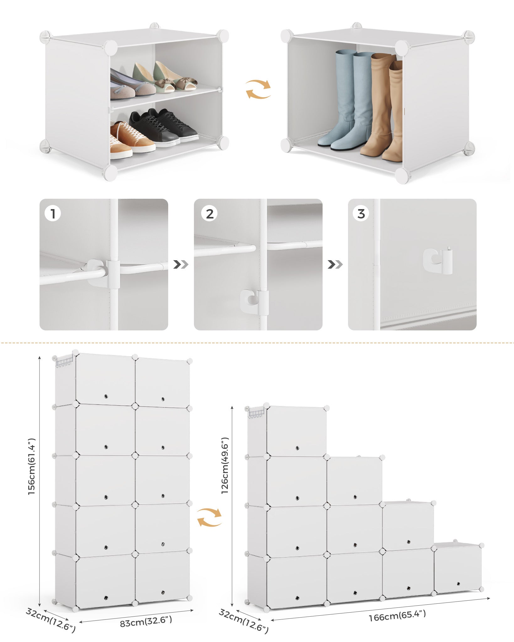 Mondeer Shoe Storage Cabinet, 2 x 10 Tier Modular Plastic Shoe Rack for 40 Pairs Shoes, Cube Shoe Organizer with Removable Shelf and Hooks, for Hallway Entryway Closet, White