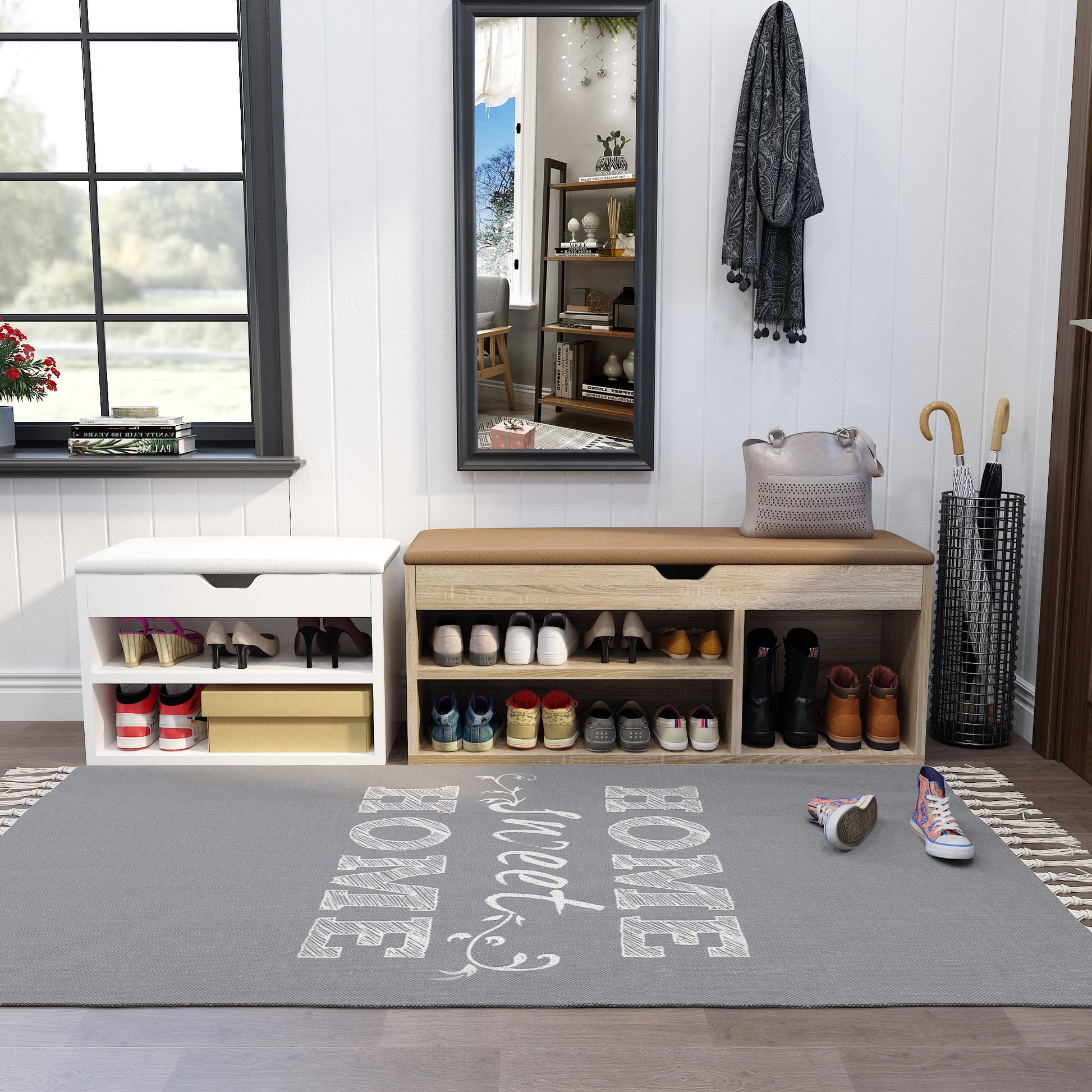 Modern Shoe Bench, Natural Wood Grain/White Color, Organizer Unit